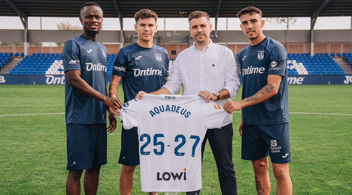 Aquadeus, empresa integrada en Grupo Fuertes y especializada en la producción y distribución de agua mineral natural, ha firmado un acuerdo de colaboración con el Club Deportivo Leganés, por el cual se convierte en el agua oficial del equipo durante la presente temporada.