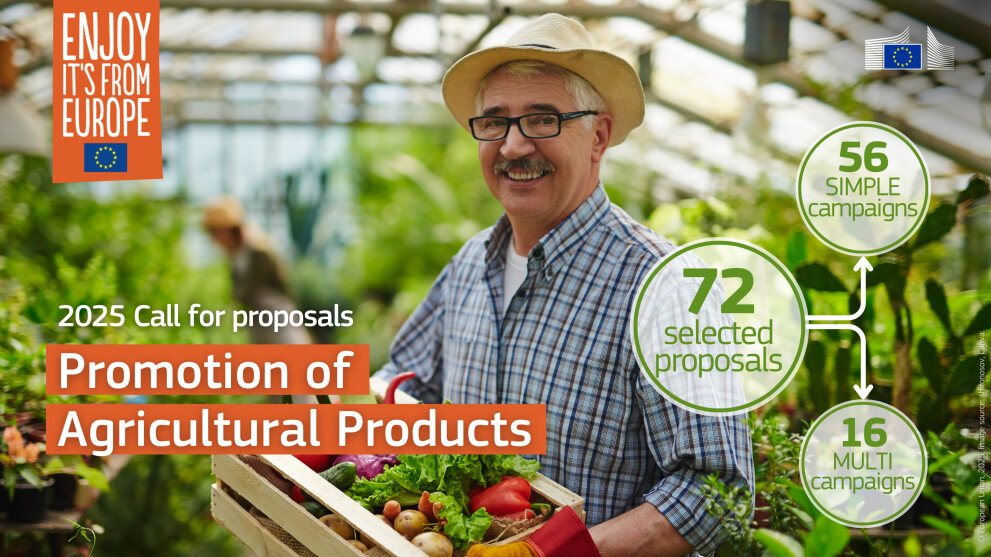La Comisión Europea ofrece financiación para iniciativas que promueven los productos agrícolas de la UE tanto dentro de la UE como en terceros países, en consonancia con la política de promoción de la UE. Las campañas de promoción recientemente seleccionadas recibirán alrededor de 132 millones de euros de financiación de la UE.