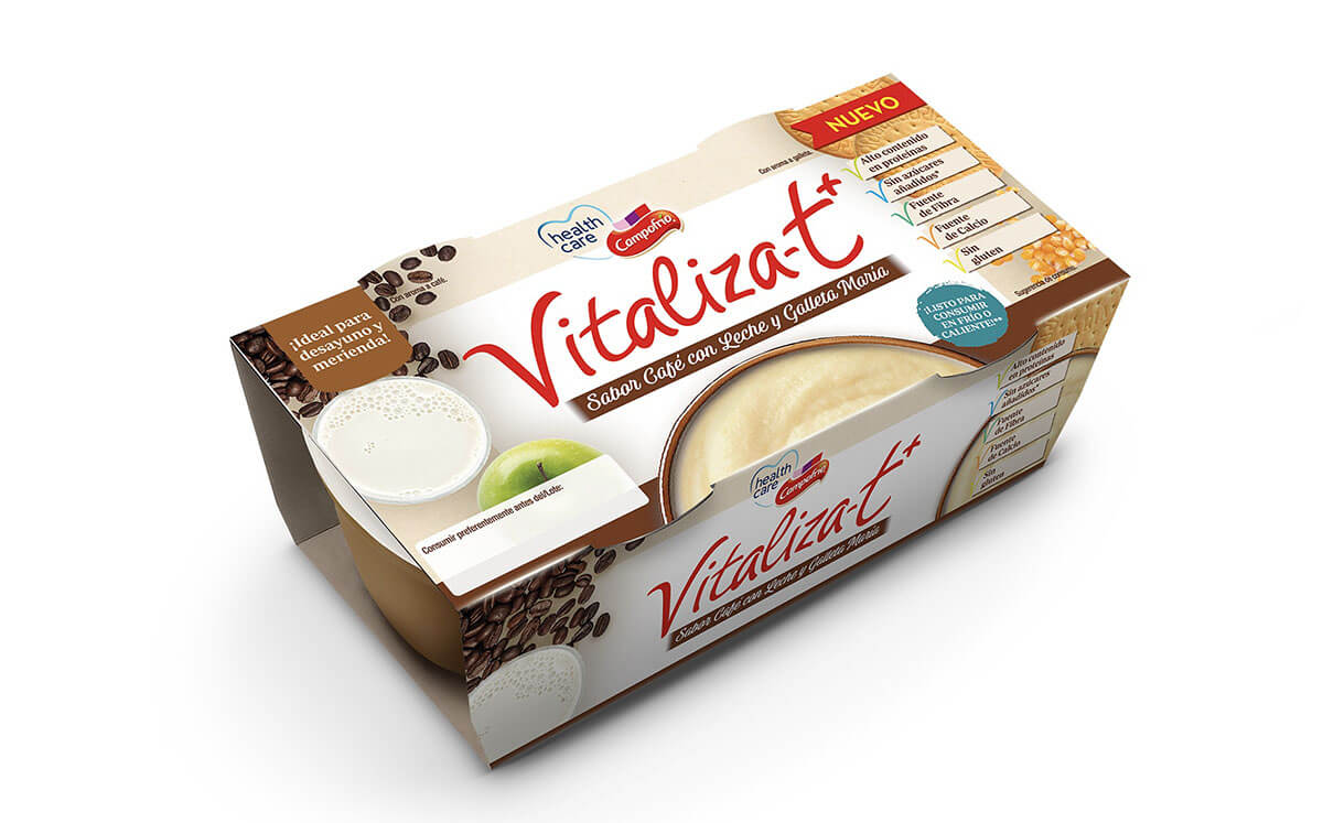 Campofrío Health Care presenta su nueva gama de Vitalízat +, ideal para Desayunos y Meriendas. Se trata de una línea de productos de textura modificada y homogénea única en el mercado que se presenta en formatos listos para consumir dirigidos especialmente a personas con disfagia, es decir, aquéllas que tienen dificultades para tragar alimentos o líquidos, o las que tienen problemas de masticación.