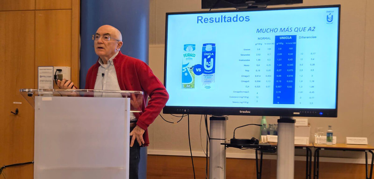 El responsable de Innovación de la cooperativa rural gallega CLUN, Ismael Martínez Lede, protagonizó la conferencia ‘Leche Únicla A2: innovación en salud y sostenibilidad avalada por evidencias científicas y ensayos clínicos’, en la que reivindicó el desarrollo de esta leche como ejemplo de innovación aplicada al sector lácteo.