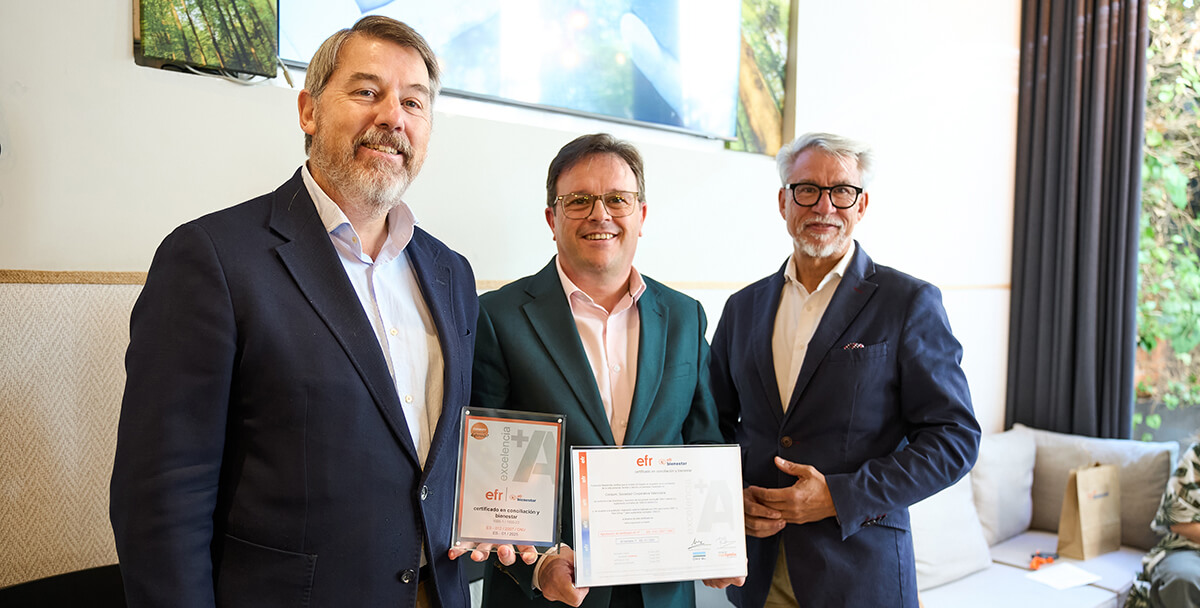 Consum ha sido distinguida recientemente con el nivel A+ del certificado efr, el máximo reconocimiento otorgado por la Fundación Másfamilia. Este distintivo acredita el compromiso de la Cooperativa con la conciliación entre la vida laboral, familiar y personal, consolidando un modelo de gestión centrado en las personas.