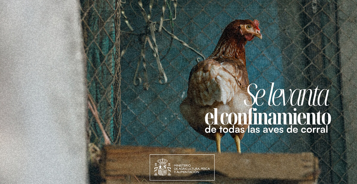 El Ministerio de Agricultura, Pesca y Alimentación levanta desde este jueves 16 de abril en toda España las medidas de confinamiento de aves de corral como consecuencia de la influenza aviar, que aún se mantenían en humedales y aquellos municipios considerados de mayor riesgo. La nueva medida se adopta dada la buena evolución de la situación epidemiológica de la enfermedad durante las últimas semanas.