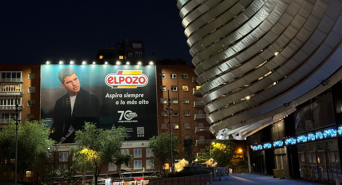 Desde el 1 y hasta el 17 de julio, los viandantes que pasen por la calle madrileña de Concha Espina se encontrarán con una lona de casi 600 metros cuadrados con la imagen de Carlos Alcaraz, embajador de la marca ElPozo, que se encuentra disputando el torneo de Wimbledon para revalidar el título conseguido en 2023.