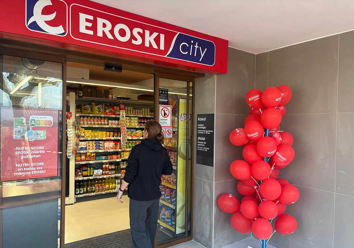 Eroski mantiene el impulso de su modelo de franquicia y ha inaugurado un nuevo supermercado, Goiko Kampina, en la localidad guipuzcoana de Zarautz.