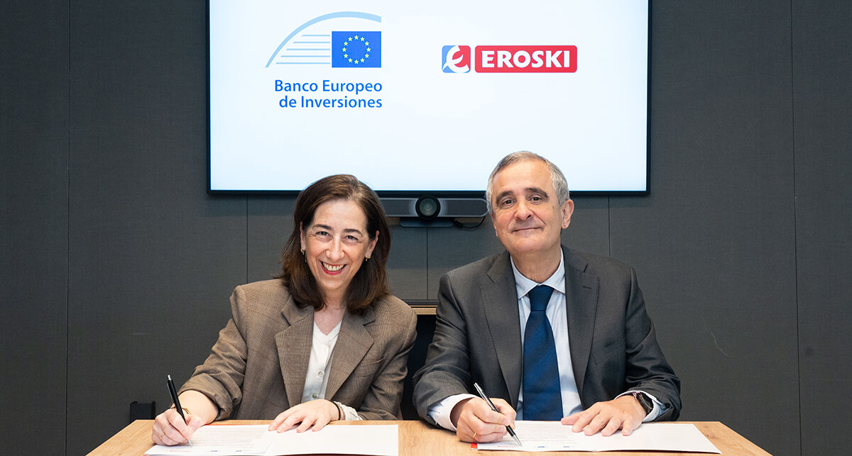 El Banco Europeo de Inversiones (BEI) y Eroski han firmado un préstamo marco de 40 millones de euros que apoyará a la compañía en la ejecución de un importante programa de inversiones destinados a la eficiencia energética e innovación digital en su red de establecimientos de toda España.