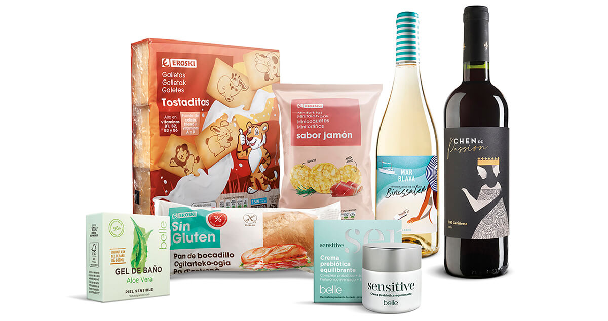 Los productos Eroski ganadores han sido las galletas tostaditas de marca Eroski en la categoría de snacks infantiles, las mini tortitas con sabor a jamón también de marca Eroski en la categoría de snacks saludables y el pan de bocadillo sin gluten de marca Eroski en la categoría “libre de”. A esos galardones en el ámbito alimentario se suman en la categoría de bebidas, su Mar Blava vino blanco D.O. Binissalem Mallorca 2022 con el reconocimiento a la mejor calidad de blancos ibéricos y su Chen de Passion Vino Tinto D.O. Cariñena 2022 al mejor valor de los tintos ibéricos. También ha sido premiado su gel de baño sólido aloe vera de su marca Belle en la categoría de baño y ducha y su crema prebiótica equilibrante sensitive de su marca Belle en la categoría de cremas faciales e hidratantes.