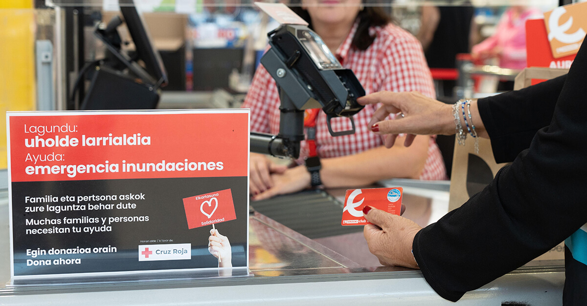 Asimismo, Eroski llevó a cabo en 2024 una campaña puntual de cooperación de emergencia, la campaña de ayuda a las personas damnificadas por los devastadores efectos de la DANA que asoló varias comunidades autónomas del país y causó incalculables daños materiales en la peor gota fría del siglo. La cooperativa consiguió recaudar más de medio millón de euros que fueron canalizados a la población afectada a través de Cruz Roja.