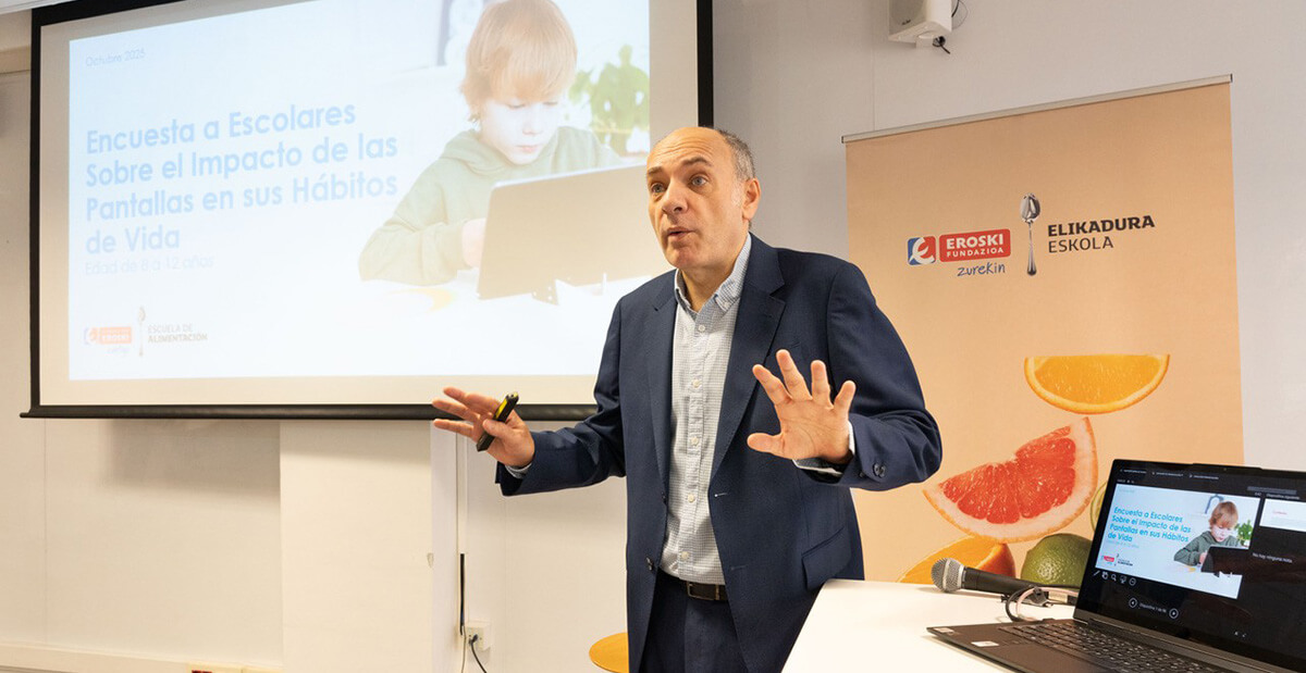 “El uso inapropiado y excesivo de pantallas en edades clave para el desarrollo cognitivo, emocional y social de los menores, así como la falta de normas y supervisión adulta, refuerza la necesidad de programas educativos y políticas públicas que promuevan entornos digitales seguros. En Fundación Eroski tenemos el compromiso de promover un uso saludable y equilibrado de la tecnología, favorecer lazos familiares libres de dispositivos y fomentar el ocio al aire libre y la vida saludable”, afirma Alejandro Martínez, director de Fundación EROSKI.