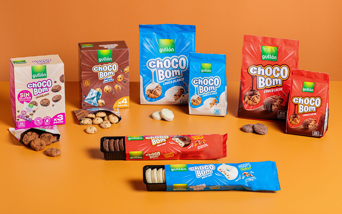 Con este último lanzamiento de las nueva ChocoBom Cacao Chips Sin Gluten, las Mini Cookies y el reciente de las ChocoBom Hoops chocolate blanco y chocolate con leche, Galletas Gullón aumenta la gama de las ChocoBom chocolate blanco y chocolate con leche. Además, retoma su rueda de lanzamientos de nuevos productos tras el asentamiento de la familia de Hookies; galletas destinadas al segmento infantil con una propuesta divertida de ‘mundo pirata’ y adaptadas a las necesidades de los diversos colectivos con la finalidad de que ningún niño se queda sin sus galletas.