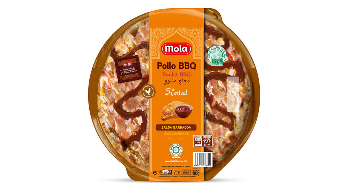 Halal Mola, la nueva marca especializada en productos halal de alta calidad, ha presentado la Pizza Halal de Pollo BBQ, la primera del segmento de refrigerados. Elaborada con carne de pollo 100% halal, esta variedad incorpora un sobre de salsa barbacoa halal para añadir después de hornear, que intensifica su sabor y le da un toque distintivo que la hace única.