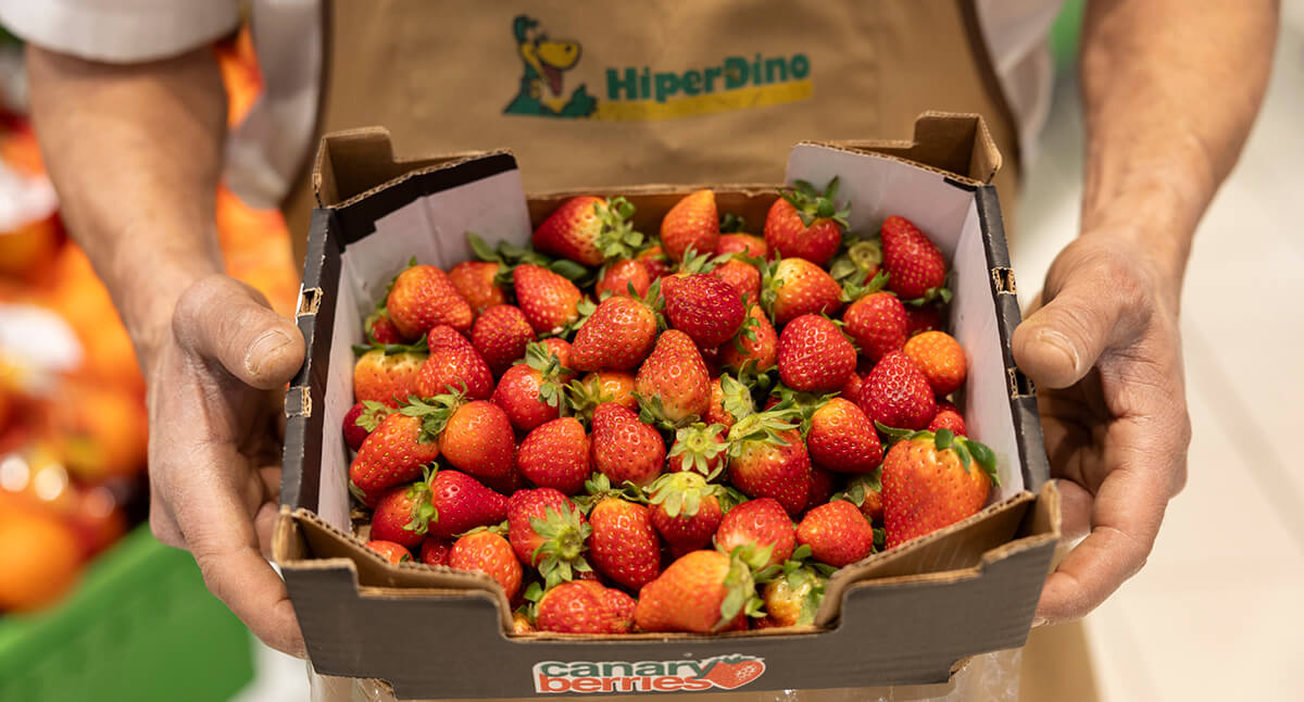 Durante el pasado año 2025, HiperDino compró alrededor de 800.000 kilogramos de fresas, destinando cerca de cuatro millones de euros a su compra. En cuanto al origen de las fresas que las tiendas de la compañía comercializan, destacan las fresas de Huelva y las provenientes de Valsequillo en Gran Canaria y Güimar en Tenerife.