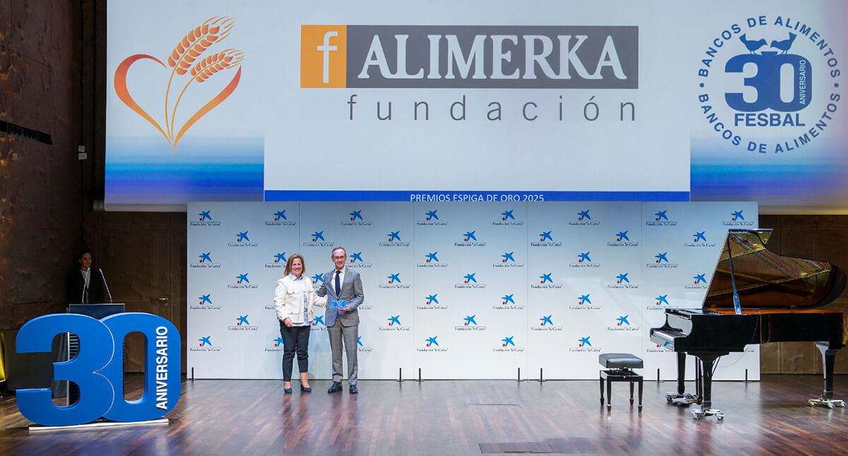 La Federación Española del Banco de Alimentos (FESBAL) celebró la gala de entrega de los Premios Espiga de Oro 2025 que ha tenido lugar en el auditorio Caixa Forum de Madrid. Entre los galardonados, Fundación Alimerka fue distinguida con el Premio Espiga Autonómica 2025 en Asturias, un reconocimiento que pone en valor su apoyo continuado a los Bancos de Alimentos, su contribución solidaria, así como su implicación en proyectos destinados a mejorar la vida de las personas en situación vulnerable.