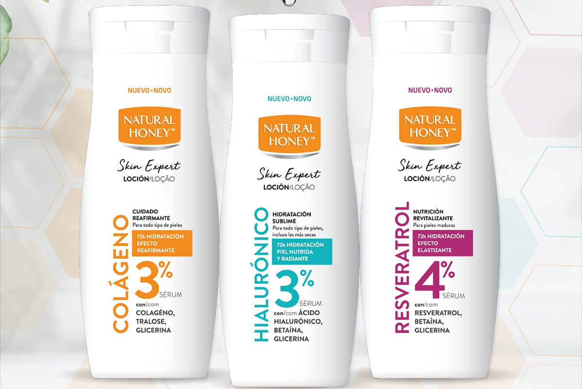 Natural Honey, marca perteneciente al Grupo Sodalis, fortalece su apuesta por soluciones avanzadas con el lanzamiento de su nueva línea Skin Expert. Se trata de una colección de lociones corporales desarrollada con concentraciones de sérum y activos de referencia en cosmética (colágeno, ácido hialurónico y resveratrol) capaces de ofrecer hidratación prolongada hasta 72 horas.