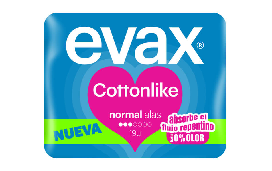 Llega al mercado la nueva Evax Cottonlike, que se adapta al cuerpo gracias a su tecnología Smart-Contour, consigue hasta 0% fugas y absorbe hasta el flujo repentino para mayor seguridad y comodidad todo el día